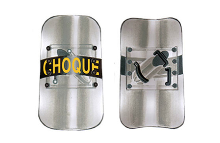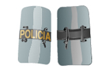 • afixado na frente ou internamente ao escudo através de material adesivo, inscrição conforme necessidade do adquirente, exemplo: “CHOQUE”, “POLÍCIA”, etc.;